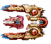 Together, the Bolboros duo fires lasers. The smaller core will fire similar to Big Core MK I, while the larger will attack with covering fire. They don't seem hard until you destroy one of the cores. If you destroy the big ship, the small ship will freak out, opening its two "shoulder blades" and firing streams of tiny bubble bullets. These "shoulder blades" can be destroyed if enough firepower is concentrated on them. If you destroy the small ship, the big ship will start moving around, firing lasers every time it stops. The small blue laser emitters can also be destroyed, lessening the amount of fire coming your way.