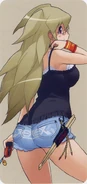 - Her DLC costume is a beautiful dress she inherited from her ancestors. It resembles that of Princess Irene from Xexex.