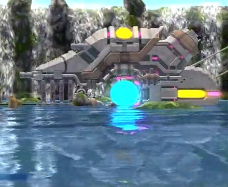 One of its laser cannons on the front shoots down Meta Lium's Big Core DX before the player makes their approach. When the player reaches the laser cannon, it fires off to the side before Old Big Core moves and floats most of the way out of the water.