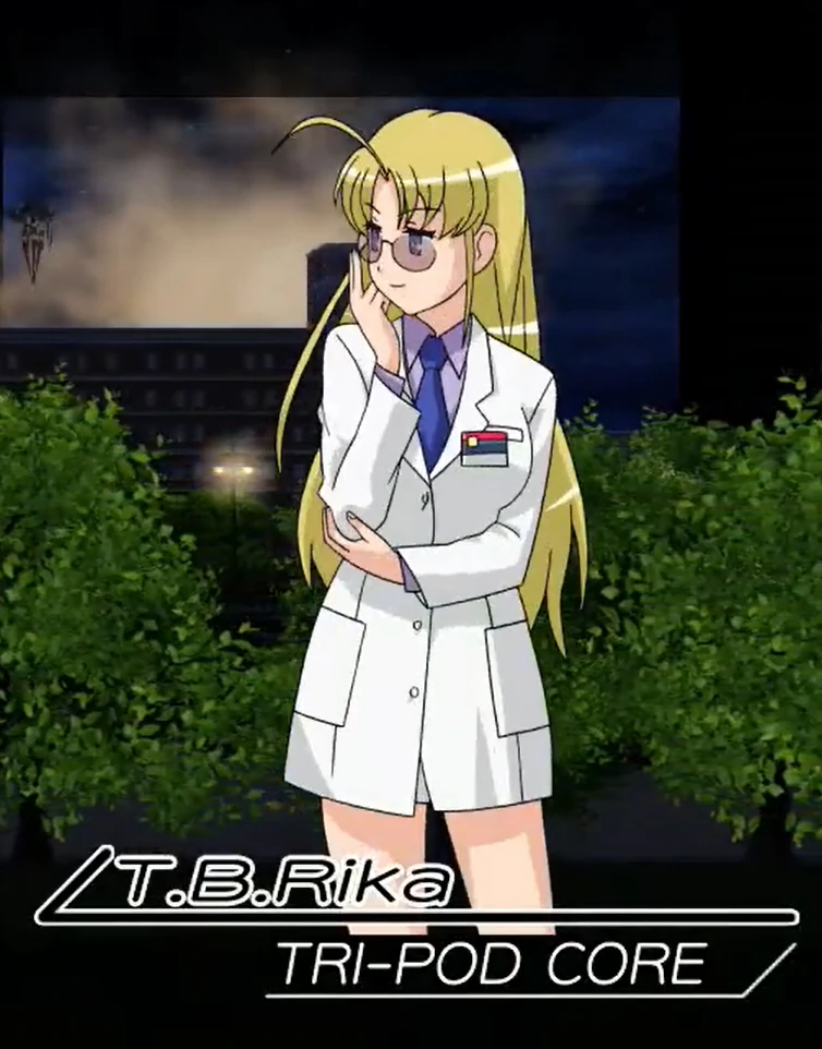 Ms. Rika is known as the homeroom teacher in St. Gradius Academy. However she's a Bacterian as spy warrior to take down the Angel Squadron as well as the G organization itself. She is the pilot of the Tri-Pod Core.